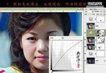 2、新建一個(gè)圖層,按ctrl + alt + shift + e蓋印圖層,給人物磨皮或降噪處理,方法自定。 3、新建一個(gè)圖層,蓋印圖層,適當(dāng)?shù)膶?duì)人物銳化處理,加上圖層蒙版把過度的地方擦掉。 4、按ctrl + alt + ~ 調(diào)出高光選區(qū),按ctrl + shift + i反選,然后創(chuàng)建曲線調(diào)整圖層,稍微調(diào)亮一點(diǎn),參數(shù)設(shè)置如下圖。