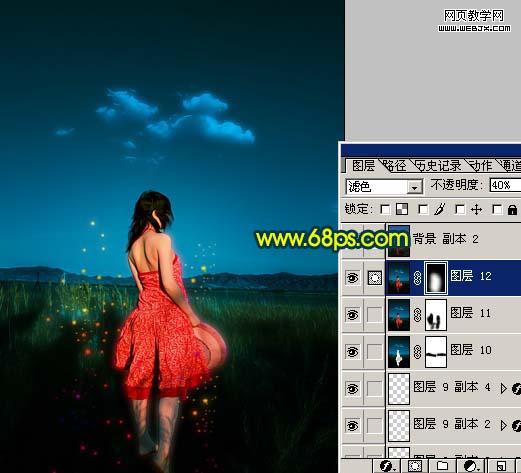 <圖22> 12、新建一個圖層,蓋印圖層,把圖層混合模式改為“濾色”,圖層不透明度改為:40%,加上圖層蒙版用黑色畫筆把邊角部分擦掉,如圖23。確定后整體修飾下細節,完成最終效果。