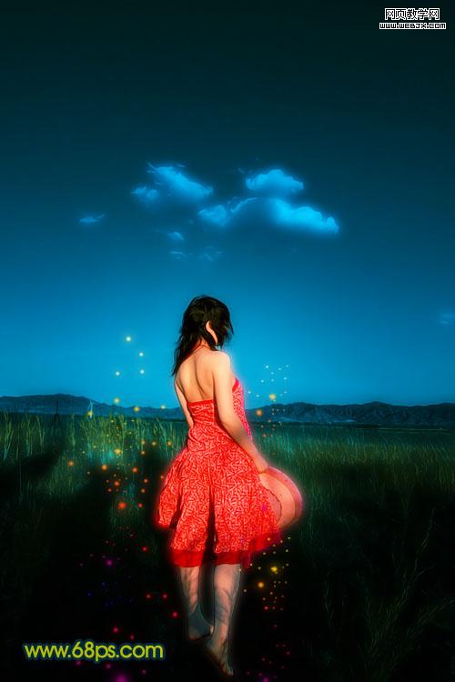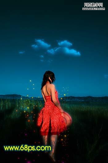 11、新建一個圖層,給人物周圍裝飾一些彩色小點,如圖22。