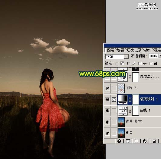 3、在曲線圖層上面創建漸變映射調整圖層,參數設置如圖6,效果如圖7。