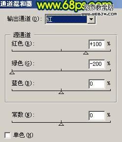<圖7> 4、在圖層的最上面創建通道混合器調整圖層,參數設置如圖8,9,效果如圖10。