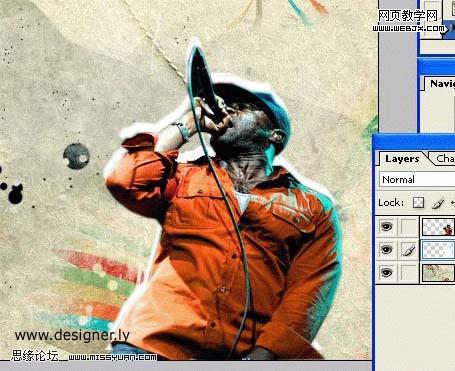 1、用多變套索工具裁出歌手,用于我們的設計。