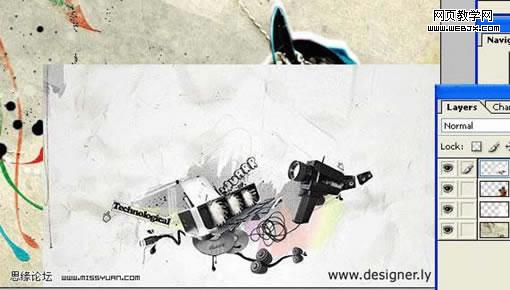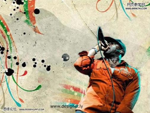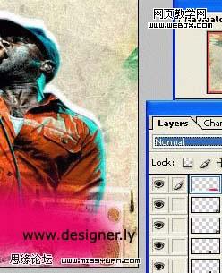 本教材用到的素材比較多,很多素材色調都是非常鮮麗的。符合潮流設計的用色。尤其是人物部分的處理,作者刻意用了很多色彩疊加,能更好的表現人物的個性。