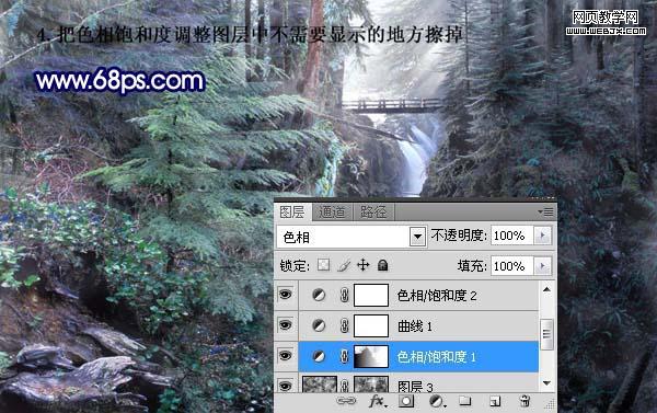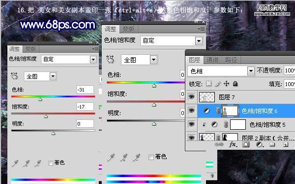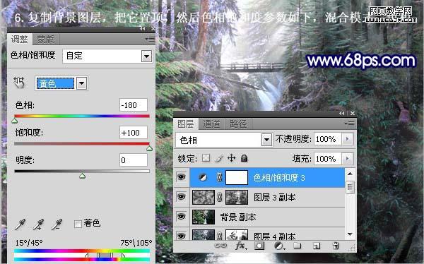 4、把色相/飽和度調整圖層中不需要顯示的地方擦掉。 5、新建一個圖層,按ctrl + alt + shift + e蓋印圖層,把蓋印后的圖層復制一層,圖層混合模式改為“正片疊底”,添加圖層蒙版用黑色畫筆擦掉不需要的部位。 6、把背景圖層復制一層,按ctrl + shift + ] 置頂,然后創建色相/飽和度調整圖層,參數設置如下圖,確定后把圖層混合模式改為“色相”。