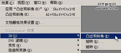 2、執行效果--3d--凸出和斜角f。 3、執行以下參數。 很快就得到下面的3d效果。 4、我們要把文字復制粘貼到ps中,執行編輯--復制。
