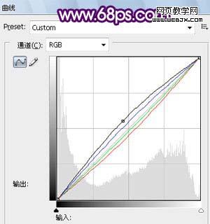 6、在所有圖層的上方創建一個曲線調整圖層。將圖層的填充度改為80%(我的這個只是當做參考,曲線往上或往下調一點,出來的效果都不同)4、在所有圖層的最上面創建一個色相/飽和度調整圖層。 5、按ctrl+shift+alt+e蓋印圖層,圖像-調整-匹配顏色,在彈出的對話框里勾選中和,其余保持默認,圖層的填充度改為46%。將這個圖層復制一層,,濾鏡-模糊-高斯模糊,半徑為3個像素。圖層混合模式改為濾色。填充度46%。