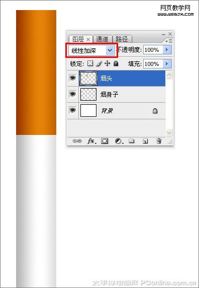 接著并在圖層控制面板上面設置圖層混合模式為線性加深,效果如圖7所示。