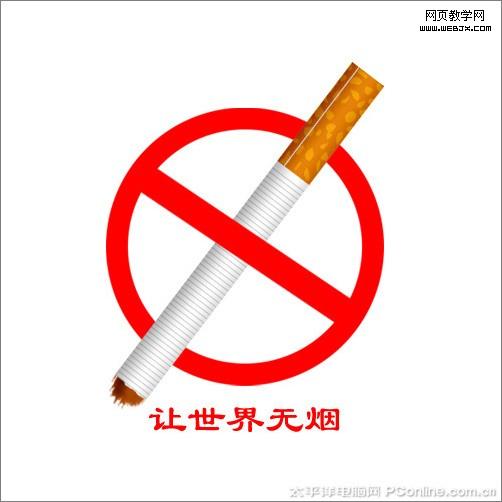 禁煙標志大家都很熟悉,每年的5月31日就是"世界無煙日",所以我們也用photoshop來設計和制作一個禁煙標志,制作過程中點在于香煙的質感的實現,這里我們用到ps中的漸變,加深工具與畫筆等