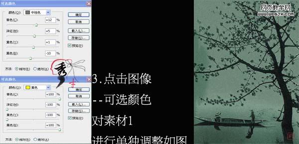 6、對素材2今天可選顏色調(diào)整(圖像 > 調(diào)整 > 可選顏色),參數(shù)設(shè)置如下圖。 7、回到素材1圖層,添加圖層蒙版用黑色畫筆擦掉多余部分。 8、最終打上裝飾文字,完成最終效果。