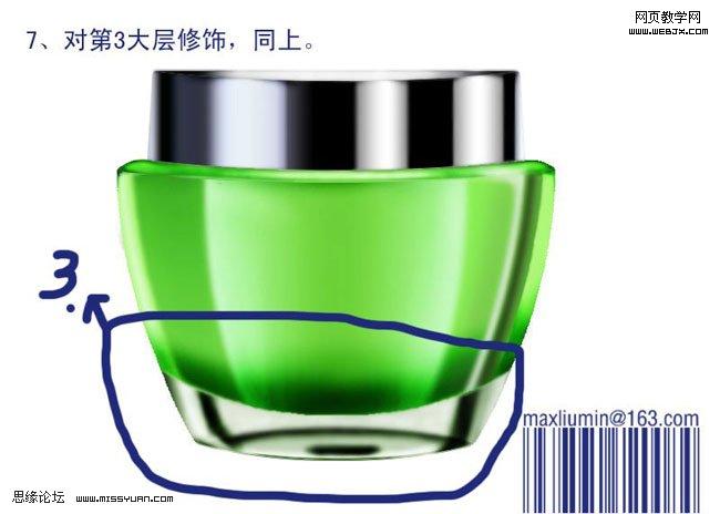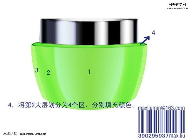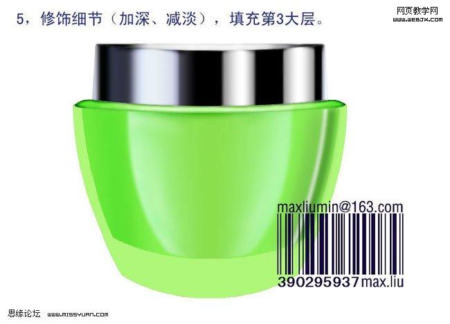 5、用加深/減淡工具修飾細節,然后把第3大曾填充淡綠色,如下圖。 6、再用加深工具加深底部。 7、用加深/減淡工具對第3大層進行修飾,效果如下圖。