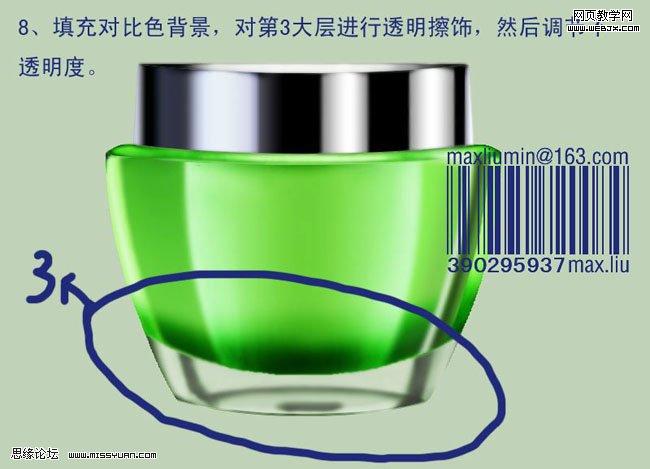8、把背景填充顏色,然后對第3大層進行透明擦飾,然后調節不透明度。 9、整體調整下西街,再加上文字好標致,完成最終效果。