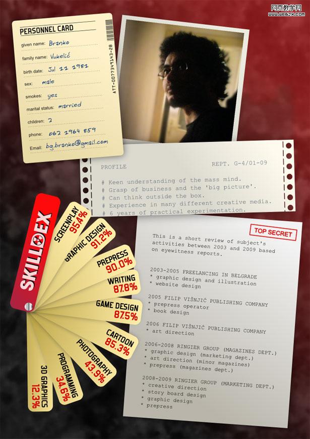 一年一度的招聘高潮又來到,在這里很多找工作的朋友都希望將自己的簡歷做的十分出色,而作為網(wǎng)頁設(shè)計(jì)師等從事設(shè)計(jì)行業(yè)的人員來說,簡歷的好壞完全可以體現(xiàn)本身的設(shè)計(jì)功力,所以做一份具有創(chuàng)意和設(shè)計(jì)感簡歷是設(shè)計(jì)師能力最好的體現(xiàn)。