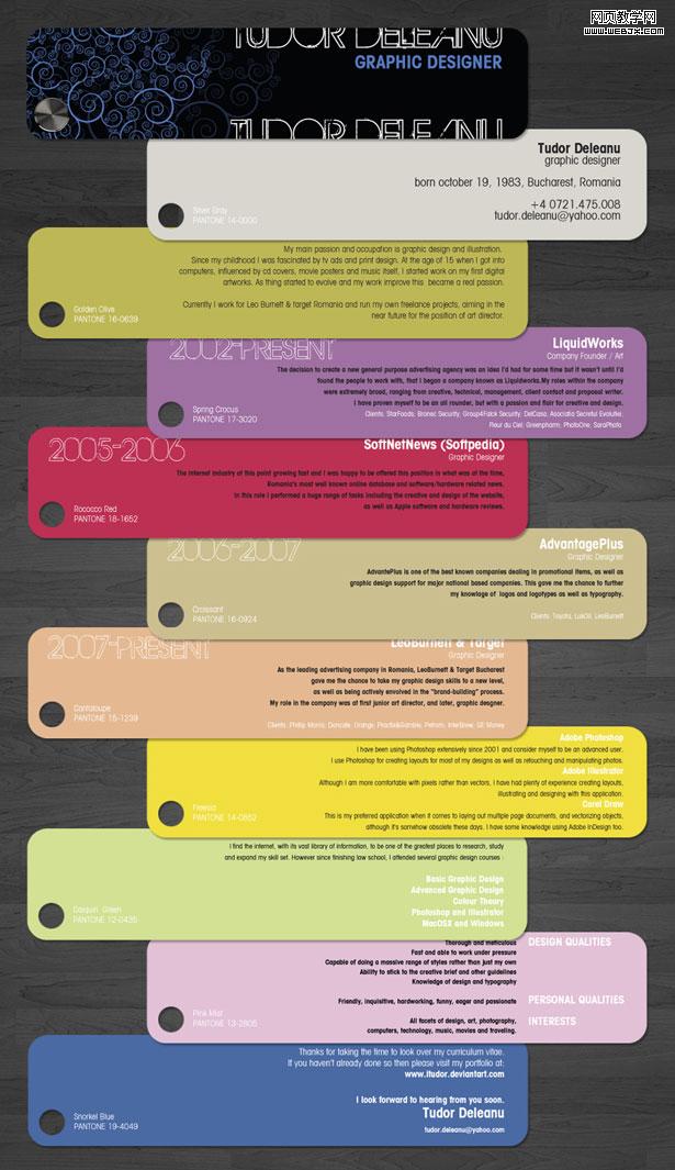 在本文中,我們將看到30個(gè)創(chuàng)意的簡歷設(shè)計(jì),它們?cè)谀阍O(shè)計(jì)自己的簡歷的時(shí)候,可以讓你爆發(fā)出靈感。