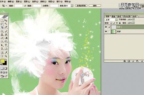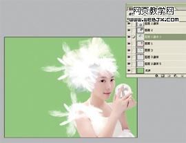 9、繼續(xù)調整頭紗素材和羽毛素材,使這個造型變的更加飽滿,如圖所示。 |