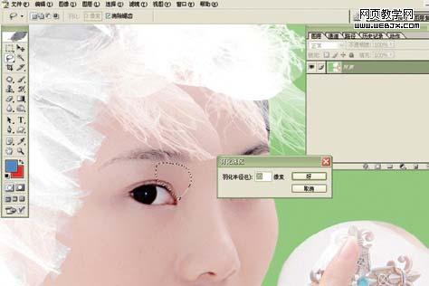 10、合并所有圖層,在人物眼皮上做選區(qū),羽化半徑為20象素。 |