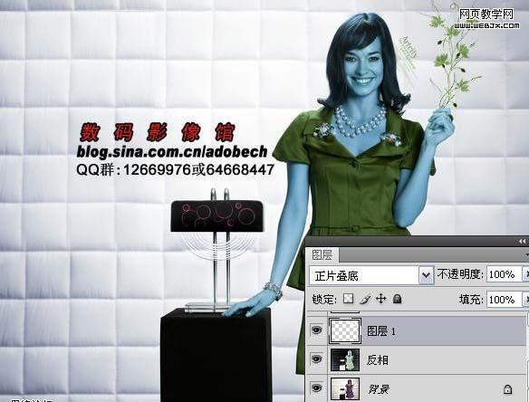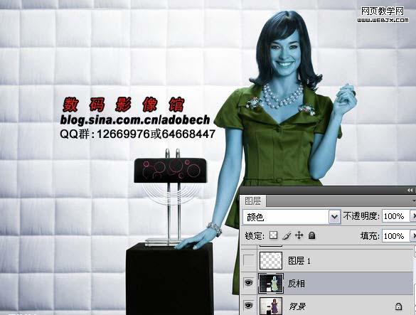 1、打開原圖素材,把背景圖層復(fù)制一層,按ctrl+i反相,然后把圖層混合模式改為“顏色”。