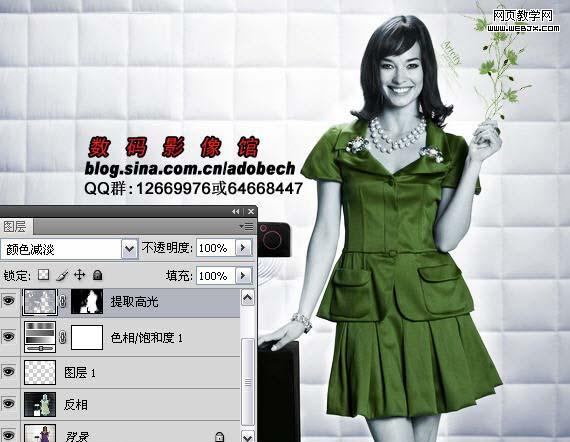 4、按ctrl + alt + ~ 提取高光,新建一個圖層填充灰色,圖層混合模式改為“顏色減淡”,加上圖層蒙版用黑色畫筆擦掉人物以外的部分。