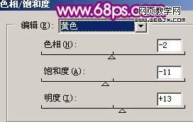 <圖16> 11、創(chuàng)建色相/飽和度調(diào)整圖層,參數(shù)設(shè)置如圖17,效果如圖18。