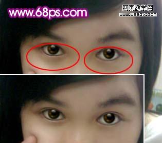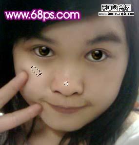 7、新建一個圖層,蓋印圖層,用吸管吸取人物眼睛周圍正常的膚色,然后用畫筆工具(透明度為:5%)涂抹黑眼圈位置,消除較大的色塊,效果如下圖。