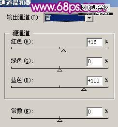 12、創(chuàng)建通道混合器調(diào)整圖層,參數(shù)設(shè)置如圖19,20,效果如圖21。