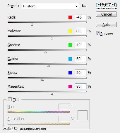 2、復制背景層,圖層模式為正片疊底,透明度:80%,你將看到圖片有些變暗: 3、再復制一個復制背景層,按下鍵盤上的ctrl+alt+shift+b,調(diào)出圖像的黑白調(diào)整窗口。參數(shù)設置如下圖所示: 4、保持圖層模式為正片疊底,調(diào)整圖層的不透明度為90%,效果如下圖所示: 5、如下圖所示,添加矢量蒙板: