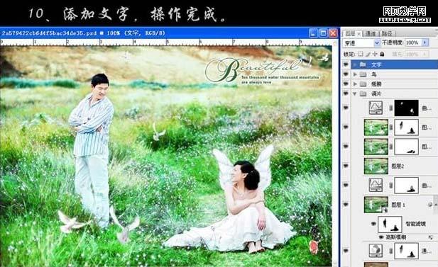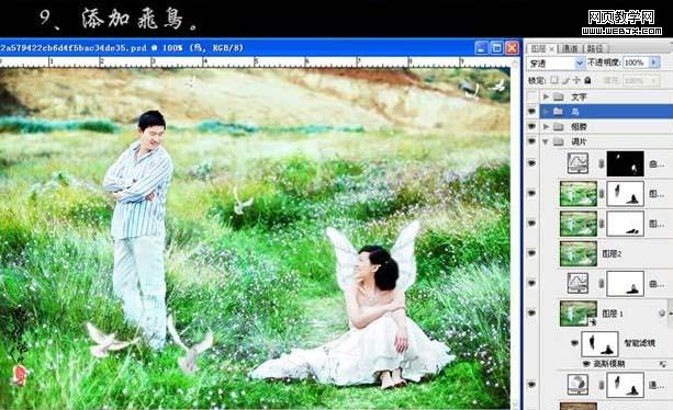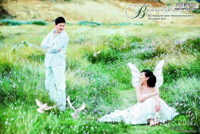 9、添加幾只鴿子做裝飾。 10、最后加上裝飾文字,完成最終效果。