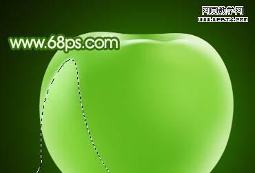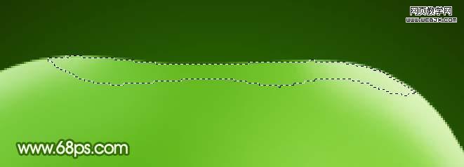 <圖18> 10、用鋼筆勾出圖19所示選區,按ctrl + alt + d羽化2個像素,然后把前景顏色設置為:#ddf2cf,新建一個圖層用畫筆涂出表面反光效果,如圖20。