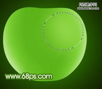 7、按ctrl點圖層面板“蘋果主體”縮略圖調出選區,在最上面新建一個圖層,把前景顏色設置為:#dff5c8,然后用畫筆突出下圖箭頭位置所示的高光,效果如圖14。