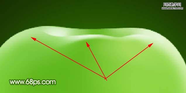 9、在當前操作圖層下面新建一個圖層,把前景顏色設置為:#ddf2cf,用畫筆涂出圖17箭頭位置的高光及顏色過渡效果,如圖18。