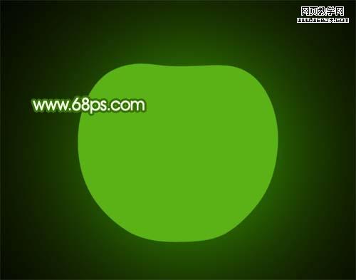 2、新建一個圖層,命名為“蘋果主體”,然后用鋼筆工具勾出圖3所示的路徑,轉為選區后填充顏色:#5ab216,取消選區后效果如圖4。