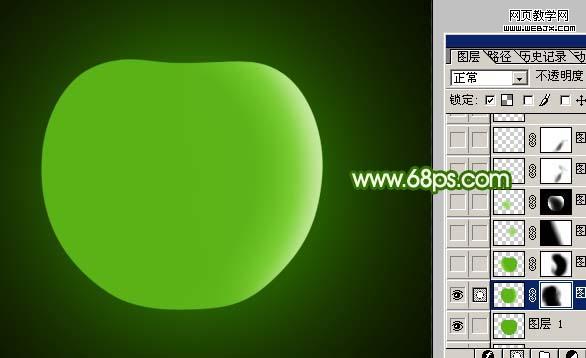 11、新建一個圖層,把蘋果底部涂上深一點的綠色,如圖21,22。