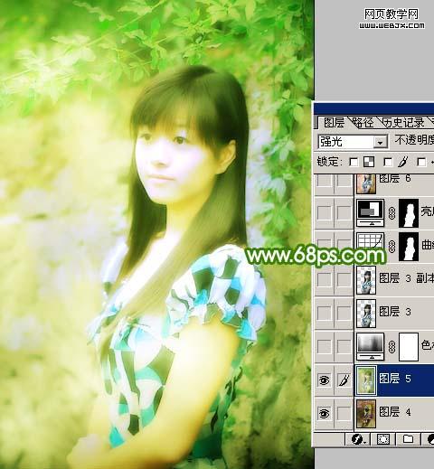 3、新建一個圖層,按ctrl + alt + shift + e蓋印圖層,執行:濾鏡 > 模糊 > 高斯模糊,數值為5,確定后把圖層混合模式改為“強光”,效果如圖3。