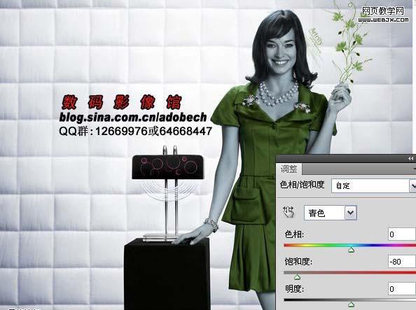 3、選擇菜單:圖層 > 新建調(diào)整圖層 > 色相飽和度,參數(shù)設(shè)置如下圖。 4、按ctrl + alt + ~ 提取高光,新建一個圖層填充灰色,圖層混合模式改為“顏色減淡”,加上圖層蒙版用黑色畫筆擦掉人物以外的部分。