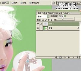 26、前景色為粉紅色,畫筆模式為疊加,在人物指甲上細致的涂上顏色,如圖所示。 27、繼續設置畫筆,參數如圖所示。 28、新建圖層,將前景色設置成黃色,在水晶球上畫出不規則黃點,再將前景色設置成白色,同樣畫出不規則白點,效果如圖所示。 29、在人物頭紗上也同樣畫出不規則白點,效果如圖所示。