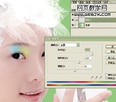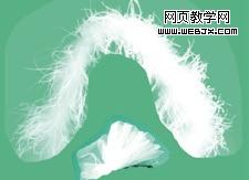 6、將同樣的造型素材復制,并放在人物的肩膀上,適當調整好位置,圖層模式仍是濾色。 8、多次復制扇形頭紗素材,并適當調整位置,圖層模式為變亮,效果如圖所示。7、將扇形頭紗素材拖入畫布中,放入人物耳邊,適當調整位置圖層模式為變亮,效果如圖所示。 9、繼續調整頭紗素材和羽毛素材,使這個造型變的更加飽滿,如圖所示。 10、合并所有圖層,在人物眼皮上做選區,羽化半徑為20象素。