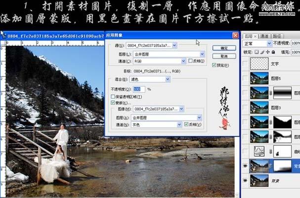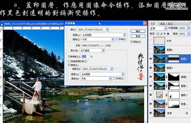 6、新建一個圖層,蓋印圖層,執(zhí)行:圖像 > 應(yīng)用圖像操作。確定后加上圖層蒙版用黑色到透明度的對稱漸變操作,效果如下圖。 7、新建一個圖層,蓋印圖層,執(zhí)行:圖像 > 應(yīng)用圖像操作。參數(shù)設(shè)置如下圖。 8、最后添加裝飾文字,完成最終效果。