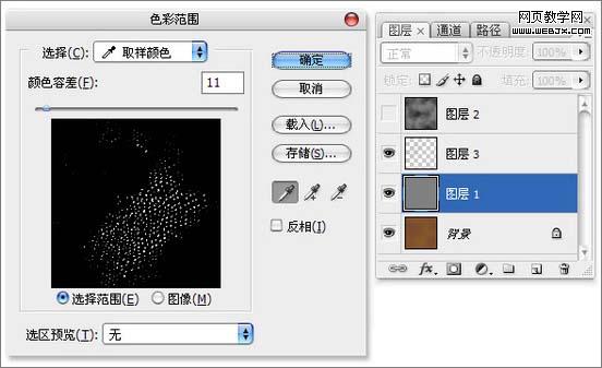 7、執行:選擇 > 色彩范圍命令,吸取部分顏色范圍選區。 8、回到“背景”圖層,執行“通過拷貝的圖層”命令。 9、繼續對“圖層1”執行“色彩范圍”命令,吸取不同與上次的部分顏色范圍作為選區。