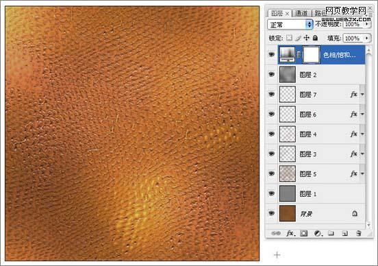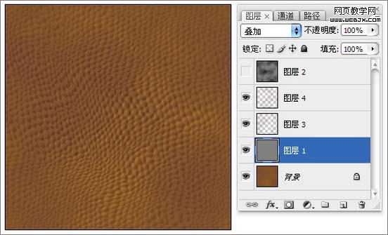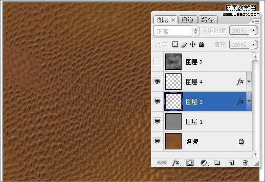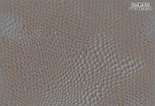 17、復制出“紅副本”通道,執行“中間值”與“最大值”濾鏡。調整色階將對比增強,作為皮革上面細小裂紋的選區。 18、載入“紅副本”通道的選區,填充褐色,作為裂紋部分。 19、為裂紋部分添加“斜面與浮雕”與“投影”圖層樣式,增加凹陷的效果。 20、制作皮革上面的一些凹點的選區,添加一些凹點的效果。 21、調整整體顏色,完成皮革部分的操作。