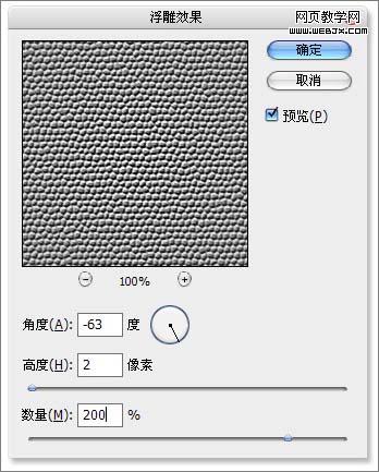 1、新建一個500 * 500 像素文件,前景色與背景色設置為皮革色的淺色與深色,執行:濾鏡 > 渲染 > 云彩濾鏡。 2、新建圖層灰色填充畫布,執行:濾鏡 > 紋理 > 染色玻璃濾鏡。 3、執行:濾鏡 > 風格化 > 浮雕效果 濾鏡。