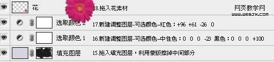 18、打開圖14所示花朵素材,摳出后拖進來放好位置。