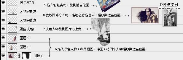 8、截取兩部分人物,描邊之后拖進來,擺放到適當位置。