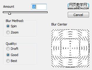 復(fù)制城市照片的圖層,然后徑向模糊濾鏡,設(shè)置如下: