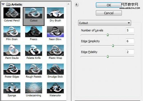 首先打開原圖,執(zhí)行濾鏡>>藝術(shù)>>摳出命令,設(shè)置如下: