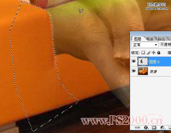 將沙發遮擋的部分去除(使用套索工具勾出選區,羽化1像素后按刪除)