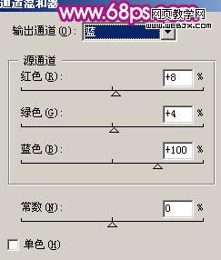 14、在圖層的最上面創建通道混合器調整圖層,參數設置如圖26,效果如圖27。