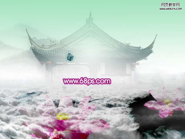<圖7> 5、打開圖8所示的亭子素材,拖進來,適當調整好大小和位置,加上圖層蒙版用黑色畫筆稍微把邊角部分擦掉,效果如圖9。
