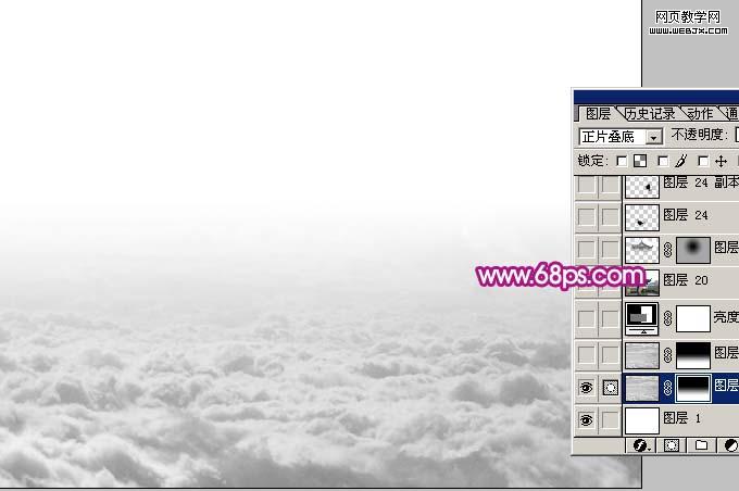 <圖23> 13、打開云彩素材,用魔術棒摳出來,加上漸變色放到人物圖層下面,效果如圖25。