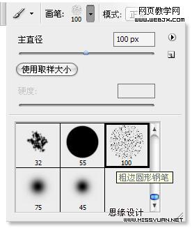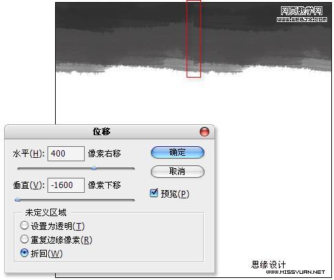 1、新建一個(gè)大小適當(dāng)?shù)奈臋n,選擇畫(huà)筆工具,打開(kāi)選項(xiàng)欄中的畫(huà)筆下拉菜單,選擇“粗邊圓形鋼筆”畫(huà)筆。 2、在畫(huà)布上方一層一層的繪制,適當(dāng)?shù)母淖儺?huà)筆顏色的明暗度,從上到下繪制出由淺入深的效果。 3、執(zhí)行:濾鏡 > 其它 > 位移,參數(shù)設(shè)置如下圖,目的修飾中間接縫部分。