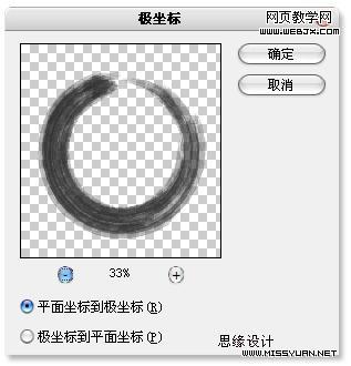 7、在畫(huà)布中間位置繪制出如圖效果。 8、執(zhí)行:濾鏡 > 扭曲 > 極坐標(biāo),選擇“平面坐標(biāo)到極坐標(biāo)”,就形成墨環(huán)效果。 9、水墨質(zhì)感在中國(guó)風(fēng)的設(shè)計(jì)中,應(yīng)用的十分廣泛。
