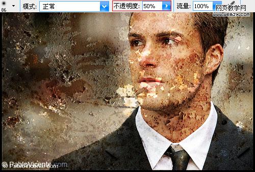 步驟 4、將前景色設為黑色,背景色為白色,選擇柔角筆刷工具,并將筆刷不透明度設為50%。